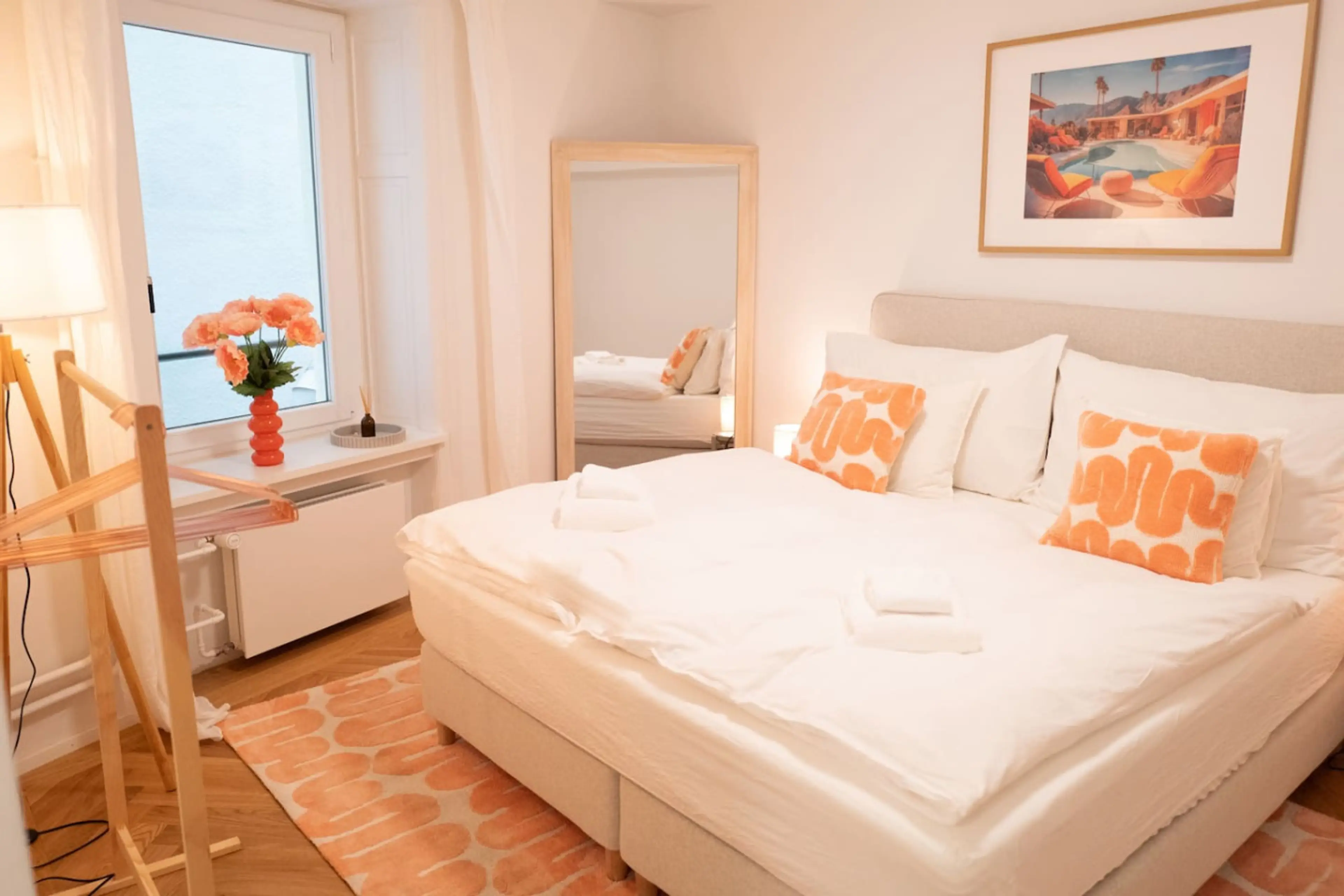 Premium 2-bedroom apartment on Universitätsstrasse 11 – steps from ETH, the University of Zurich, the University Hospital, and the Kunsthaus. Bright retro-inspired design with sage tones, two king-size bedrooms, fully equipped kitchen, washer/dryer, and Nuki self check-in. Minutes to Bellevue, the O...
