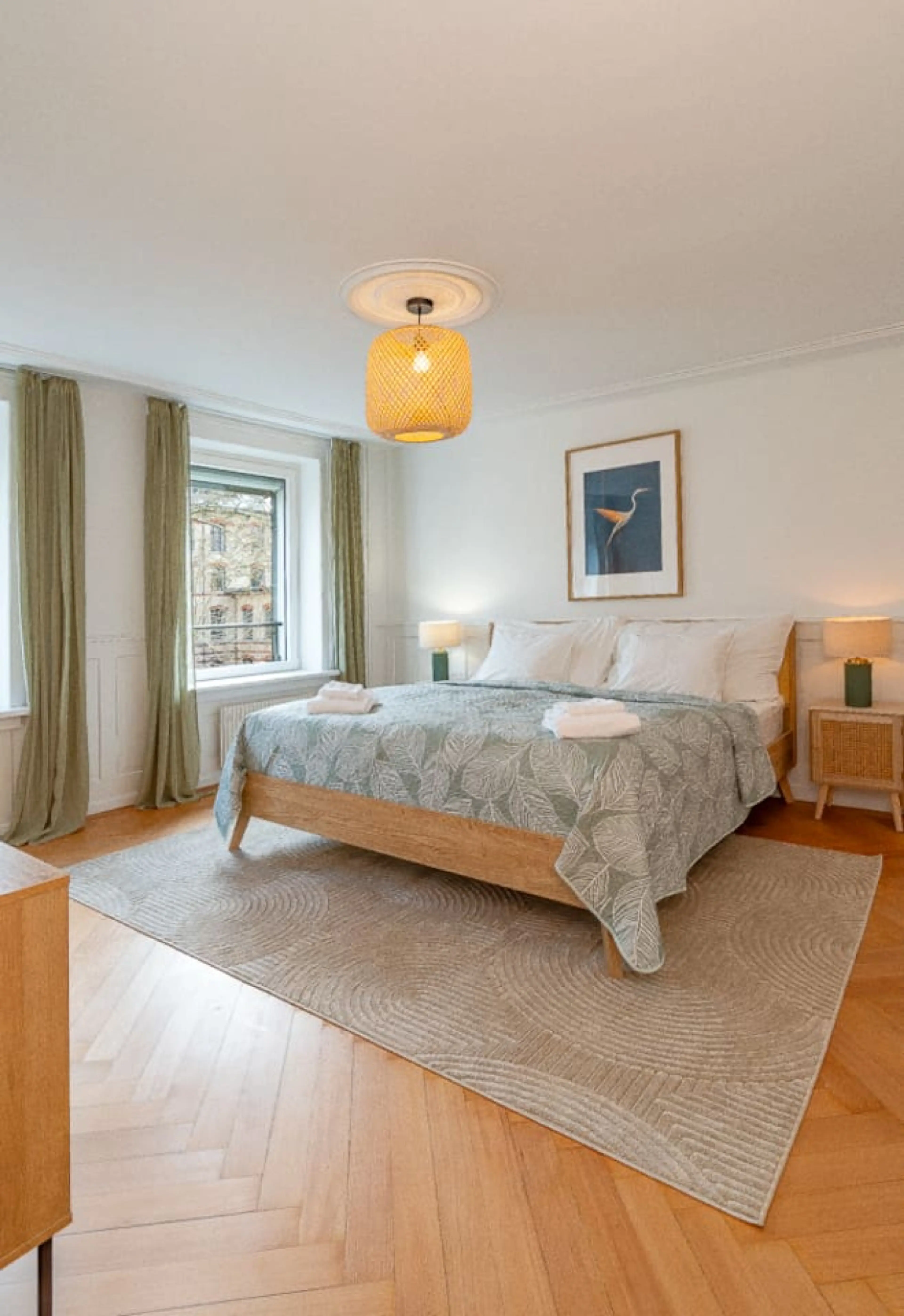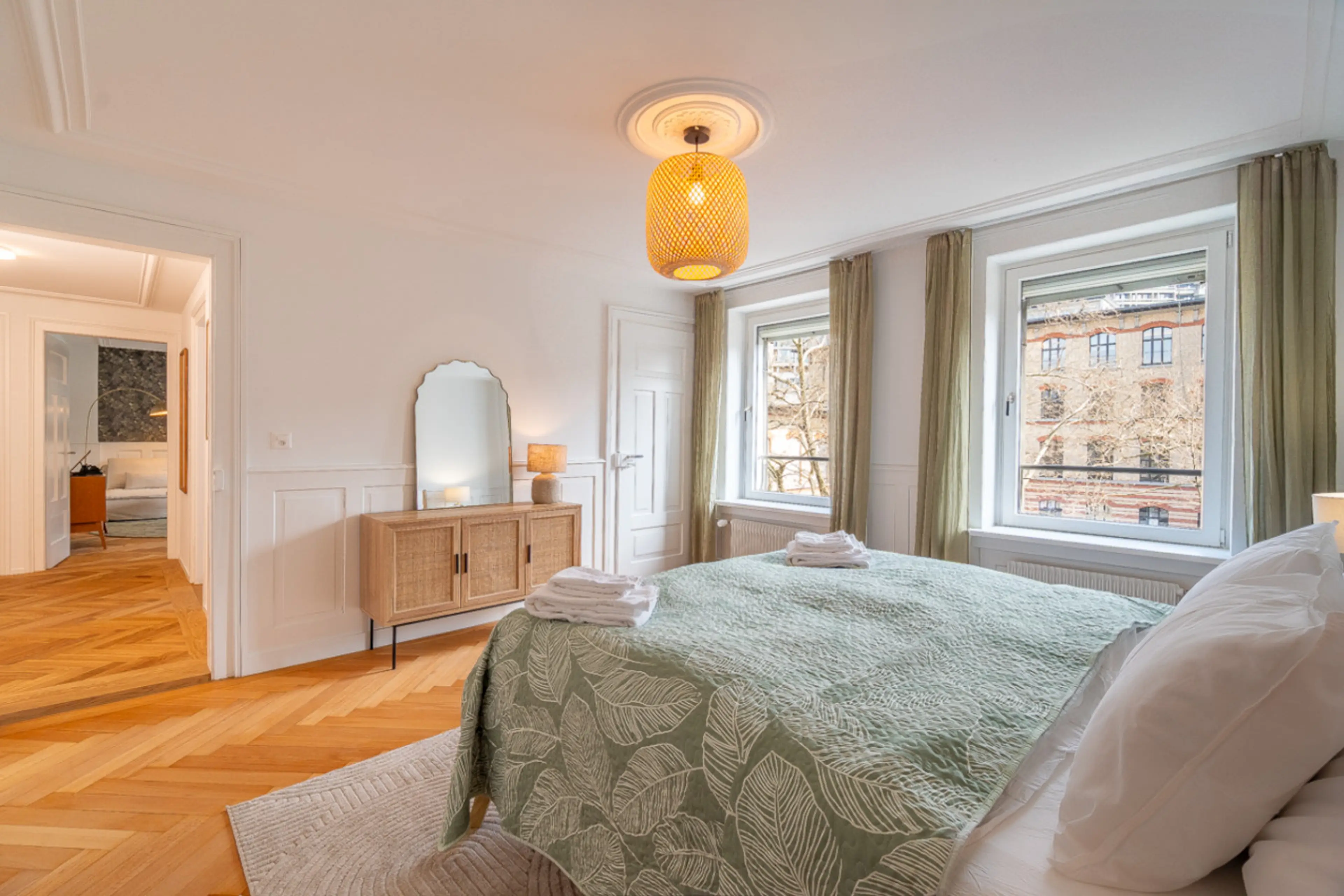 Geräumige 3-Schlafzimmer-Suite im 3. Obergeschoss eines denkmalgeschützten und sanierten Altbaus an der Universitätsstrasse 11. Nur wenige Schritte zur ETH, Universität Zürich, dem Unispital, Kunsthaus und der Polybahn. Geschmackvolle Boho-Elemente, zwei Kingsize-Schlafzimmer plus ein helles Zimmer ...
