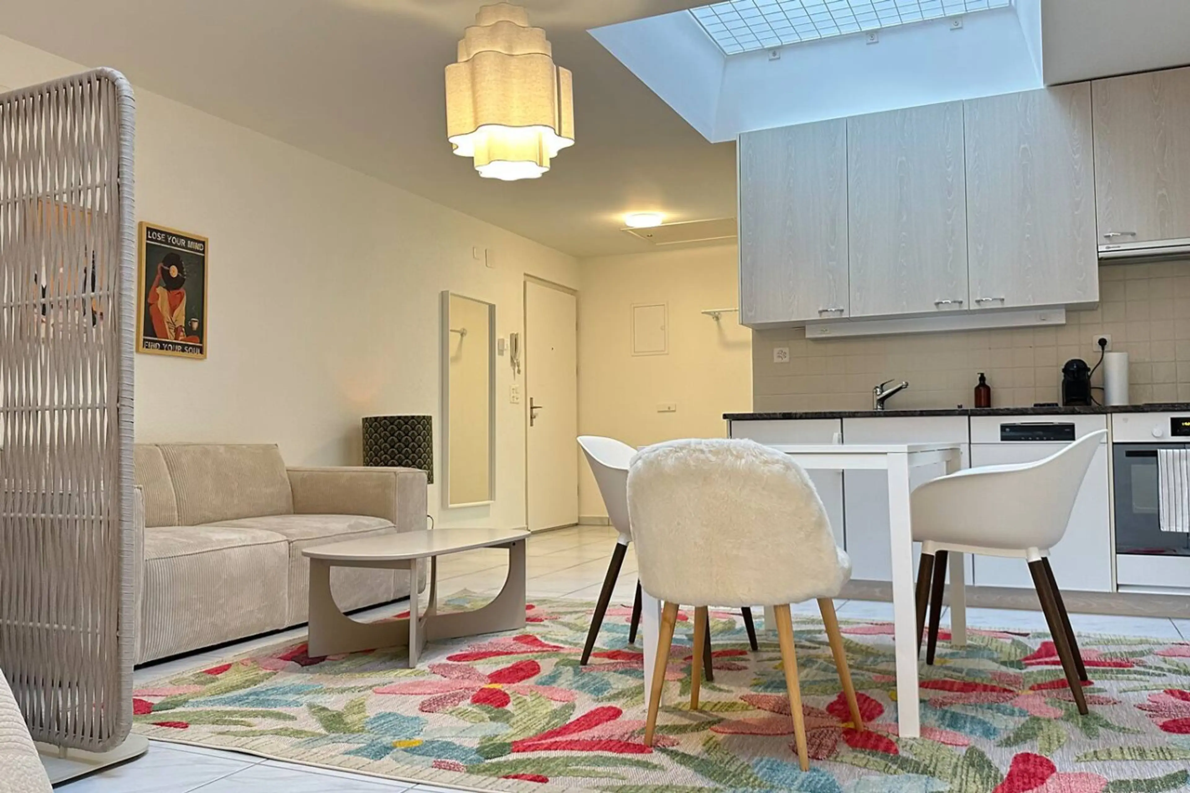 Willkommen in der Cave Suite, einem stilvoll eingerichteten Studio, das Komfort, Ruhe und modernes Design perfekt verbindet. Ein gemütlicher Schlafbereich, ein komfortables Sofa und ein moderner Ess- und Arbeitsplatz sorgen für eine angenehme, ruhige Atmosphäre. Die Küche ist vollständig ausgestatte...