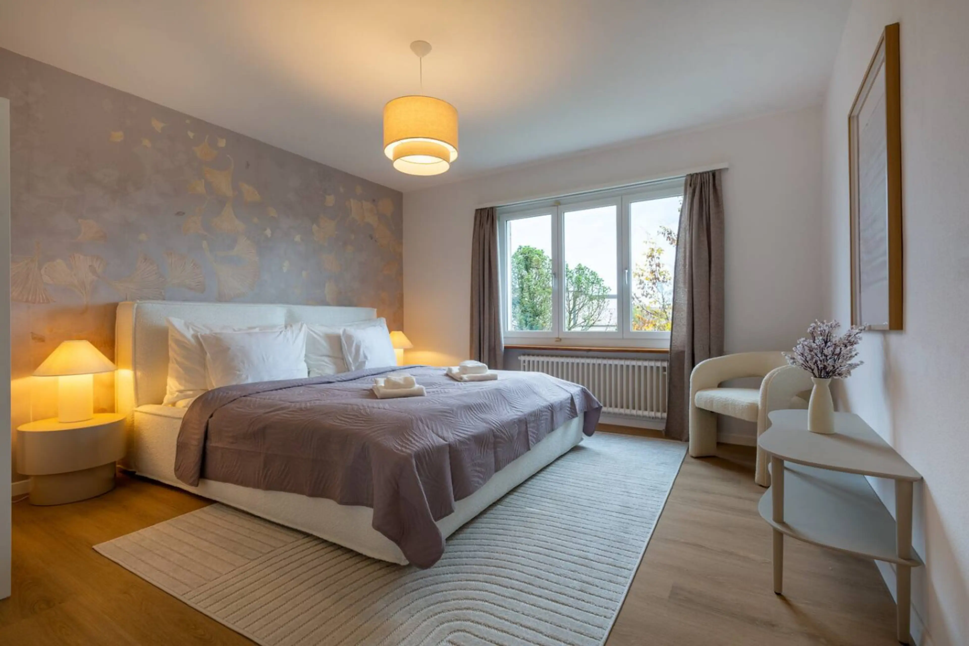 Willkommen in der Schokoladensuite – inspiriert von warmen Tönen und süßem Komfort! Freu dich auf zwei gemütliche Schlafzimmer mit King-Size-Betten, ein stilvolles Wohnzimmer in sanften Farben, eine voll ausgestattete Küche und ein elegantes Badezimmer. Genieße WLAN, Flachbild-TV und Self-Check-in. ...